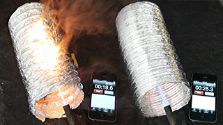 Slinky Foil (left) Does Not Resist Flame Spread — DryerFlex (right) Does