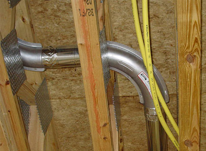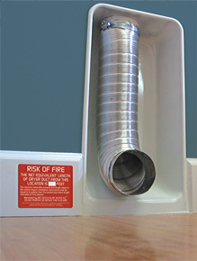 The image to the left is actual duct that was not protected inside the cell of the wall. As the dryer vibrates back against the wall, it creates an immediate fire hazard. With a Dryerbox, homeowners can take comfort in knowing their dryer always has room to breathe.