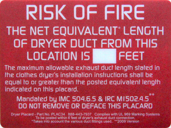 Dryer Placards make it easier to use the manufacturer's allowable run length instead of a more restrictive general code requirement.